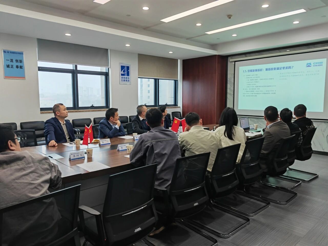 近日,公司劳模创新工作室联合中机国际工程设计研究院专家,在设计分公司召开装配式技术专项研讨会。株洲市劳动模范、公司党委委员、副总经理、总工程师龙新乐参会,中机国际工程设计研究院总工程师谭光宇、五建筑工及设计分公司技术骨干共同参与研讨。本次会议基于株洲市康复医院综合楼新建项目,以“提升原拆原建场景下快速建造产业化能力”为核心目标,通过劳模领衔的技术攻关,推动一体化“设计-生产-施工”协同机制落地,为民生工程高效实施注入创新动能。会上,设计团队就项目一体化建造实施方案作系统汇报,各方技术骨干重点围绕梁板一体化预制免模免撑多层全装配式楼盖体系、梁柱双螺旋箍筋两项核心创新技术展开深度交流。